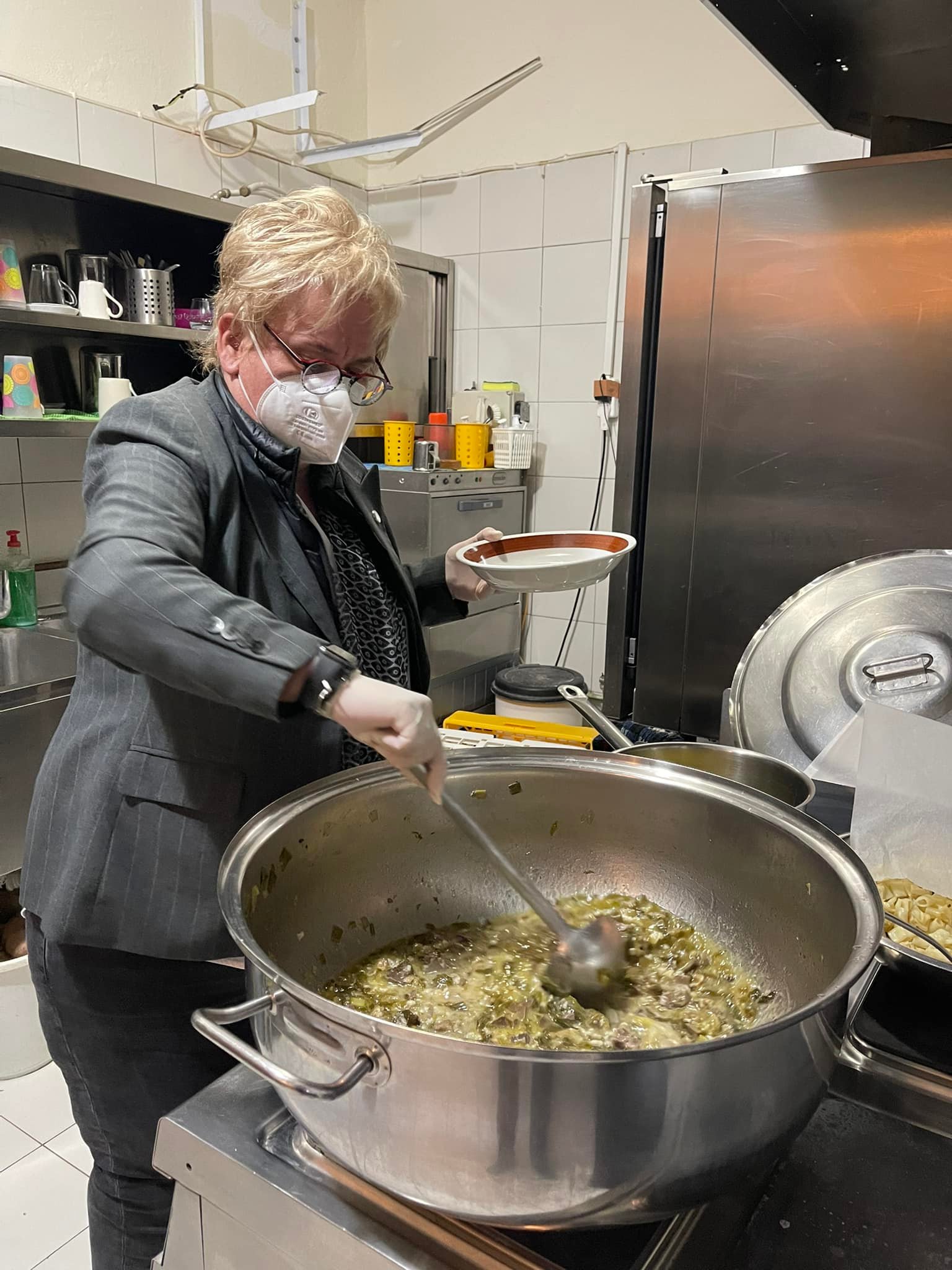 Η κα Νάκου μοίρασε λαμπάδες, έψαλλε, και μετά την Ανάσταση σέρβιρε την παραδοσιακή μαγειρίτσα στους περιθαλπόμενους.